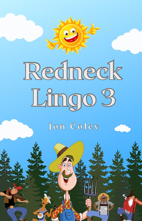 On the writing front, REDNECK LINGO 3 is in the works. All the memes are ready to go and I’ve dusted off the hillbilly book cover. There are a lot of graphics, so formatting will take a while. It will not be published quite as wide as my fiction, but should be available on Amazon and Gumroad like its ancestors.
